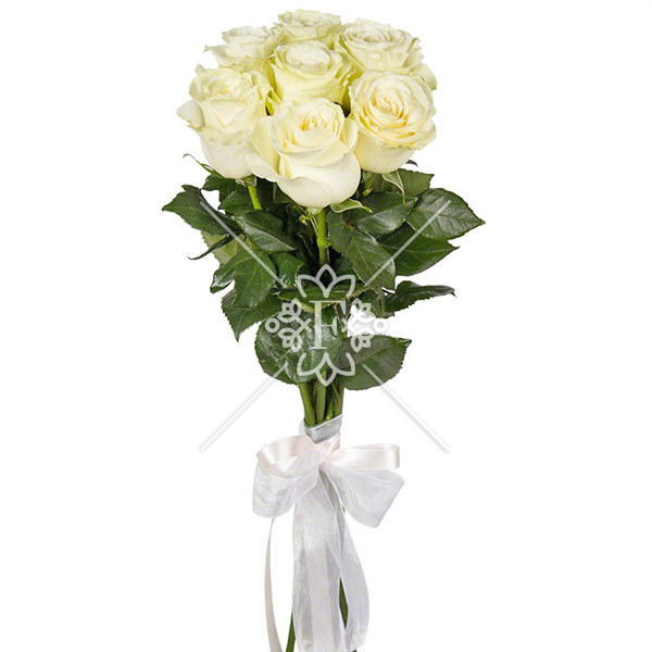 Букет из 7 белых роз передает восхищение любимой женщиной. Это замечательный комплимент, для которого не нужен повод.